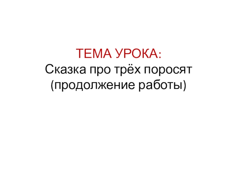 Слайд 2 ТЕМА УРОКА: Сказка про трёх поросят (продолжение работы)
