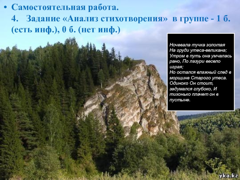 4. Задание «Анализ стихотворения» в группе - 1 б. (есть инф.), 0 б. (нет инф.)