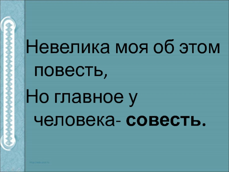 Невелика моя об этом повесть, Но главное у человека- совесть.