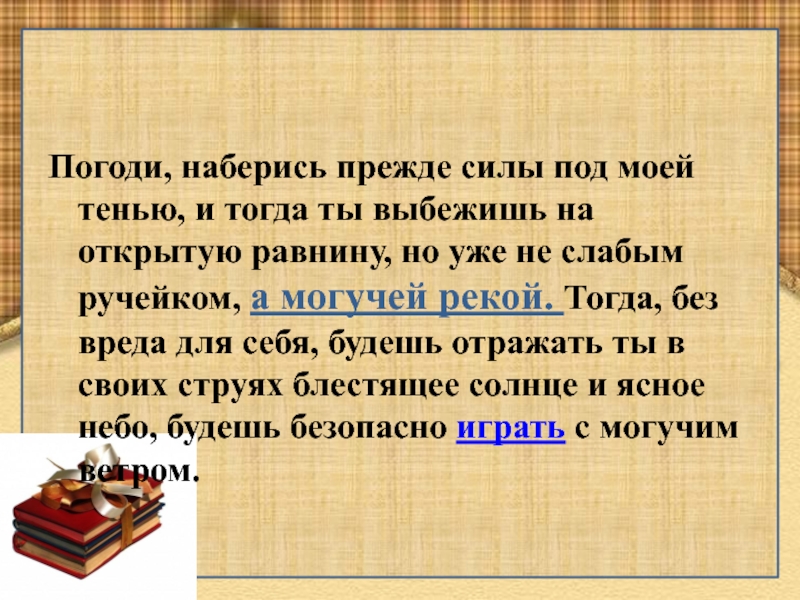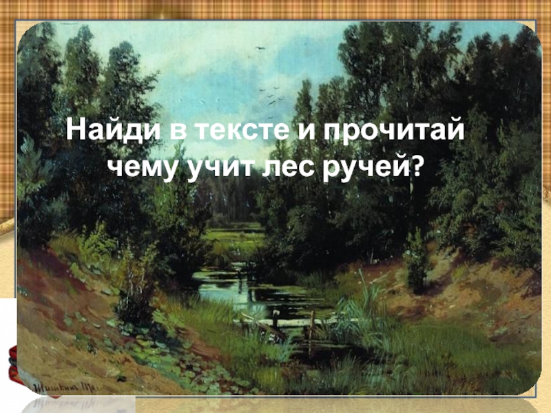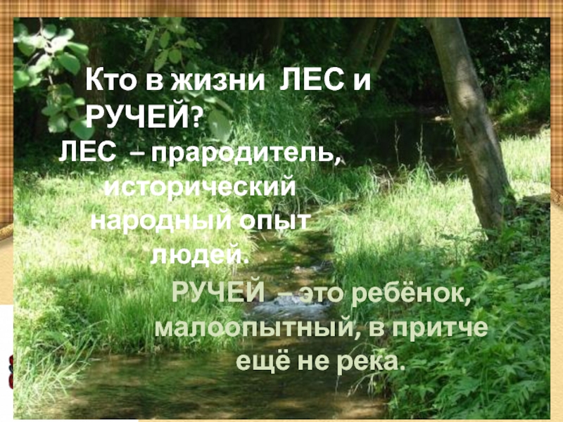 РУЧЕЙ – это ребёнок, малоопытный, в притче ещё не река.