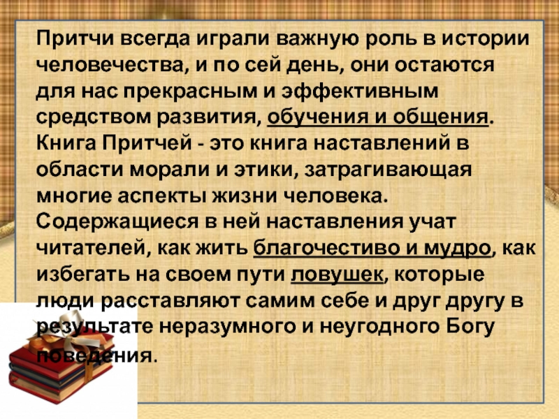 Это сайт презентаций, где можно хранить и обмениваться своими презентациями, докладами, проектами, шаблонами в формате PowerPoint с другими пользователями. Мы помогаем школьникам, студентам, учителям, преподавателям хранить и обмениваться учебными материалами.