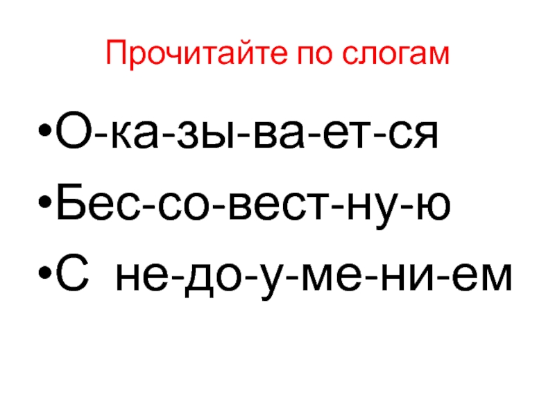 Прочитайте по слогамО-ка-зы-ва-ет-сяБес-со-вест-ну-юС не-до-у-ме-ни-ем