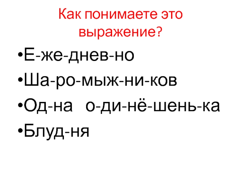 Как понимаете это выражение?Е-же-днев-ноШа-ро-мыж-ни-ковОд-на  о-ди-нё-шень-каБлуд-ня