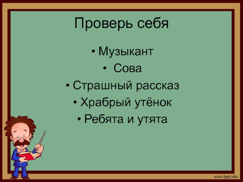 Проверь себяМузыкант СоваСтрашный рассказХрабрый утёнокРебята и утята