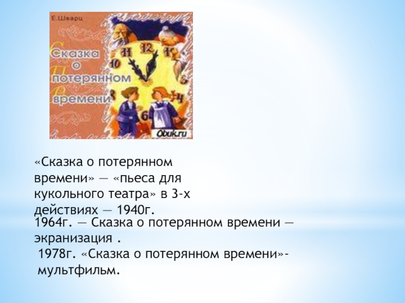 1978г. «Сказка о потерянном времени»- мультфильм.