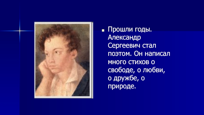 Слайд 6Прошли годы. Александр Сергеевич стал поэтом. Он написал много стихов о
