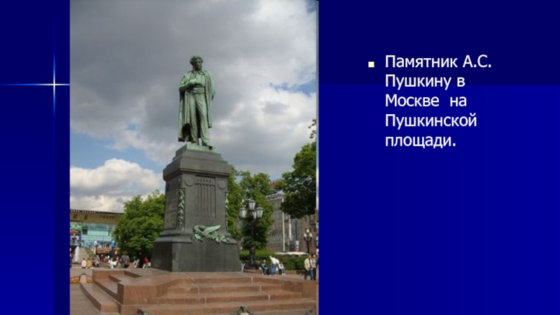 Слайд 12Памятник А.С. Пушкину в Москве на Пушкинской площади.