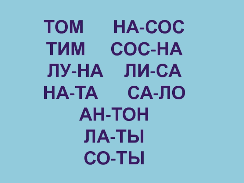 ТОМ    НА-СОСТИМ   СОС-НАЛУ-НА   ЛИ-САНА-ТА    СА-ЛОАН-ТОНЛА-ТЫСО-ТЫ