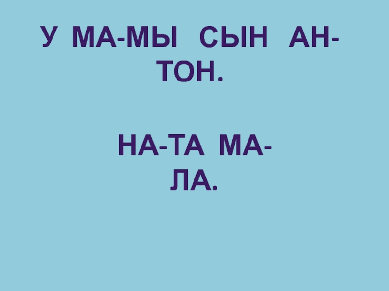 У ма-мы  сын  Ан-тон.На-та ма-ла.