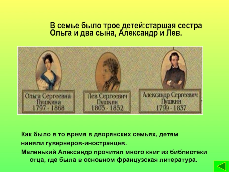 Маленький Александр прочитал много книг из библиотеки отца, где была в основном французская литература.