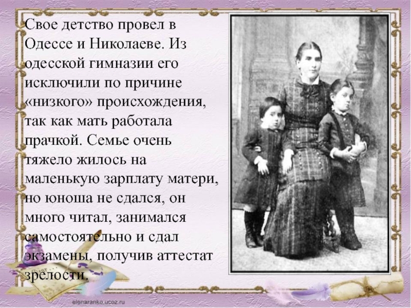 Слайд 4Свое детство провел в Одессе и Николаеве. Из одесской гимназии его