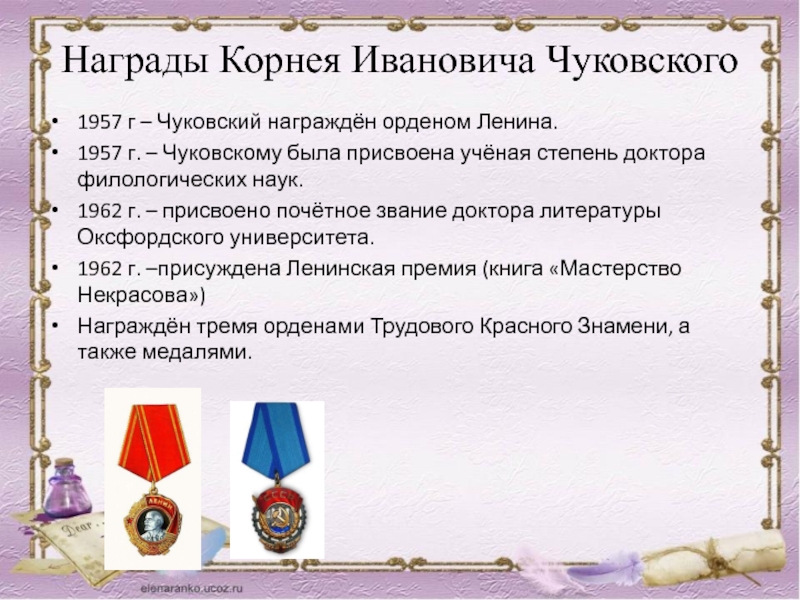 1962 г. –присуждена Ленинская премия (книга «Мастерство Некрасова»)