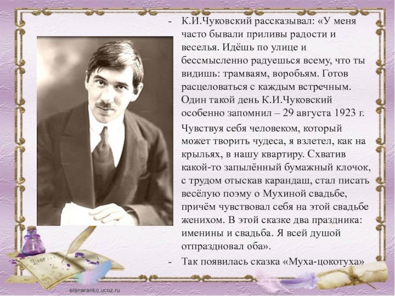 Слайд 8К.И.Чуковский рассказывал: «У меня часто бывали приливы радости и веселья. Идёшь