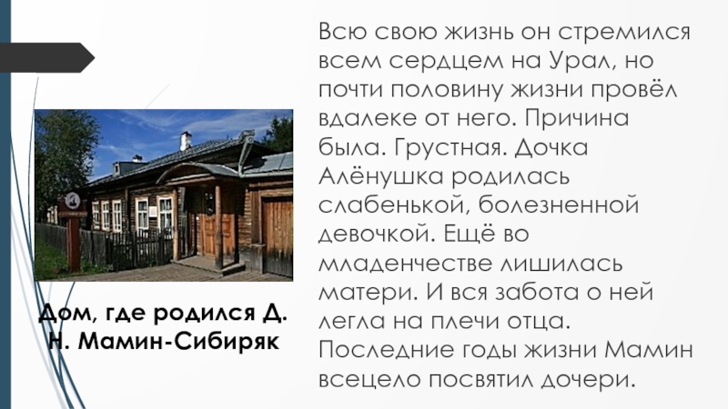 Дом, где родился Д.Н. Мамин-Сибиряк