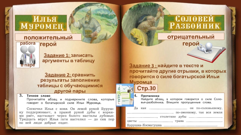 Задание 3 : найдите в тексте и прочитайте другие отрывки, в которых говорится о силе богатырской Ильи Муромца