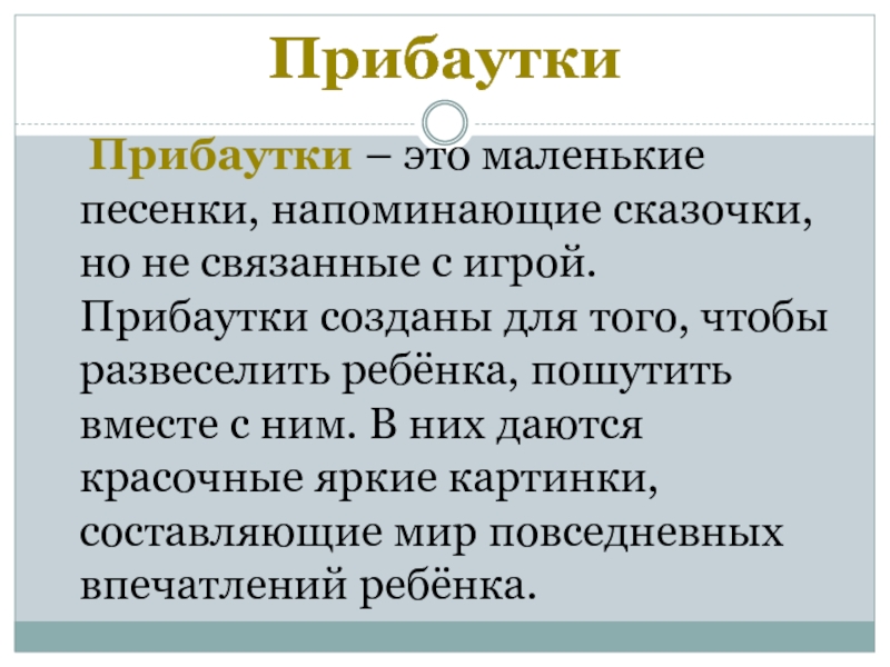 Прибаутки – это маленькие песенки, напоминающие сказочки, но не