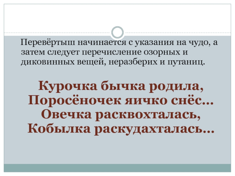 Слайд 26 Перевёртыш начинается с указания на чудо, а затем следует