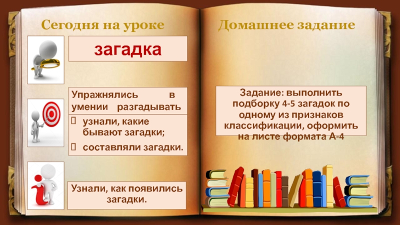 В русских народных свадебных обычаях вплоть до XIX века загадывание загадок составляло обязательную принадлежность свадебного обряда. Подруги невесты загадывали жениху и дружке жениха трудные загадки и не пускали их в избу к невесте до тех пор, пока не получали правильного ответа. Ну а в русских народных сказках, вы и сами это уже хорошо знаете, царевна выходит замуж за того, кто сумел отгадать все её загадки.