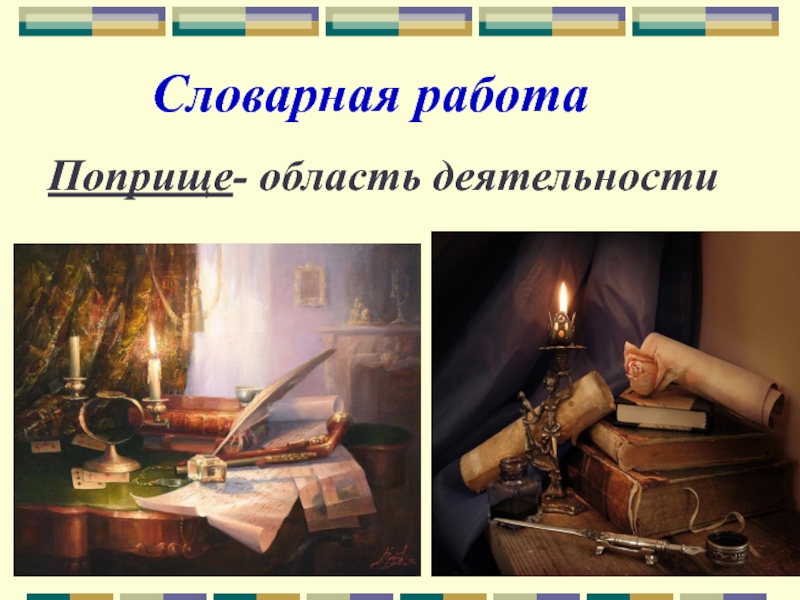Словарная работаПоприще- область деятельности