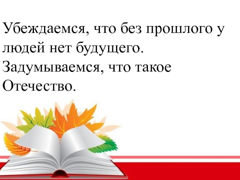Убеждаемся, что без прошлого у людей нет будущего. Задумываемся, что такое Отечество.