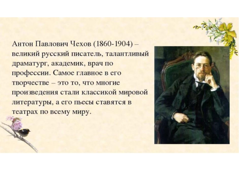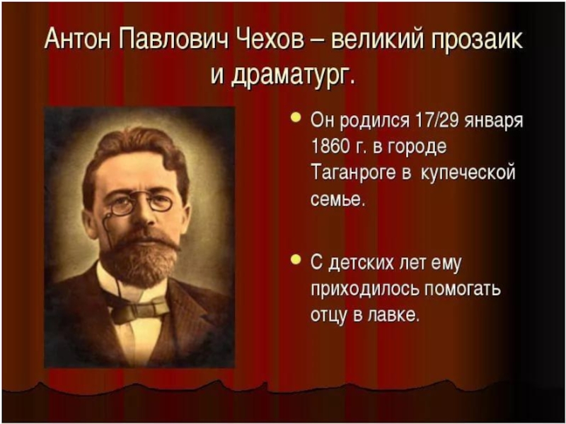 Антон Павлович Чехов  работа ученика 4 «б» класса  Депутатской СОШ Андрея Захарова