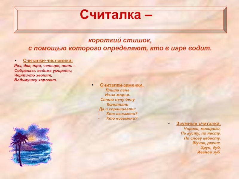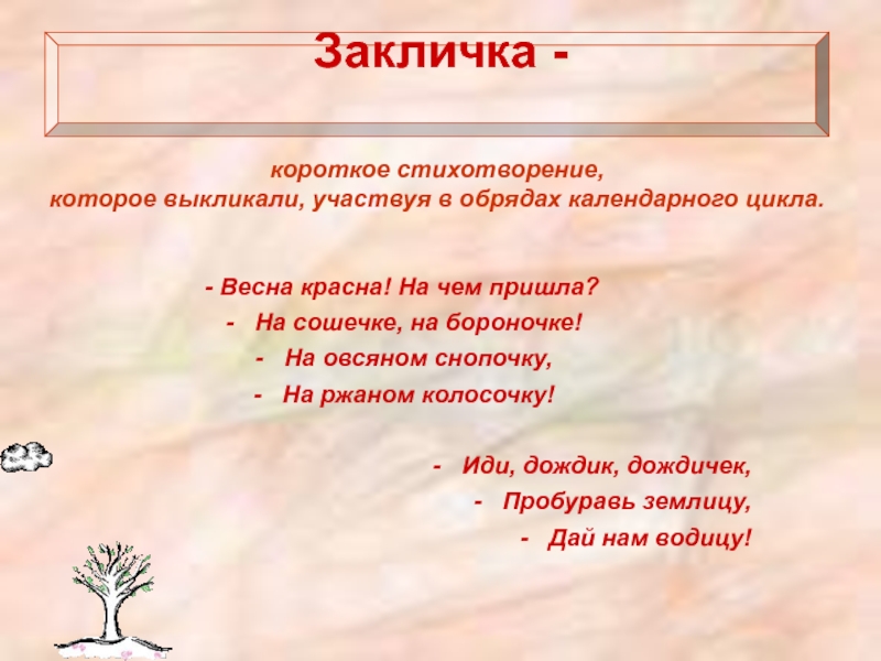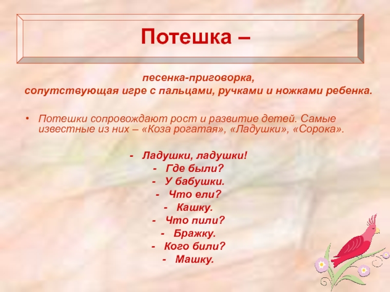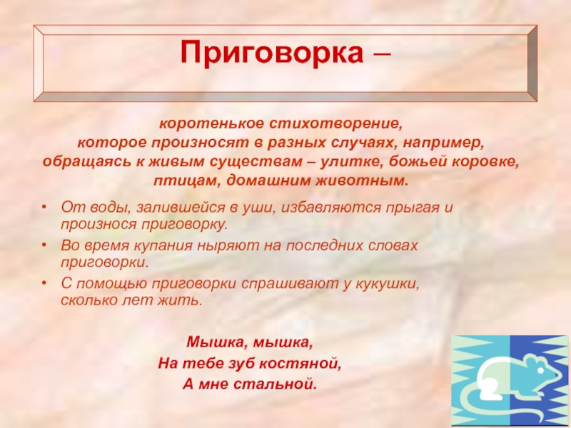 которое произносят в разных случаях, например, обращаясь к живым существам – улитке, божьей коровке, птицам, домашним животным.