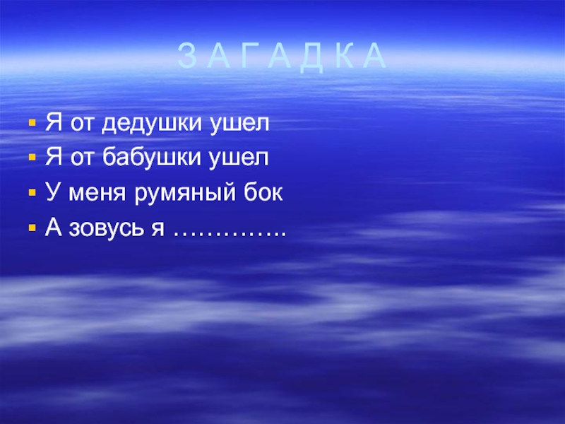 З А Г А Д К А Я от дедушки ушелЯ от бабушки ушелУ меня румяный бокА