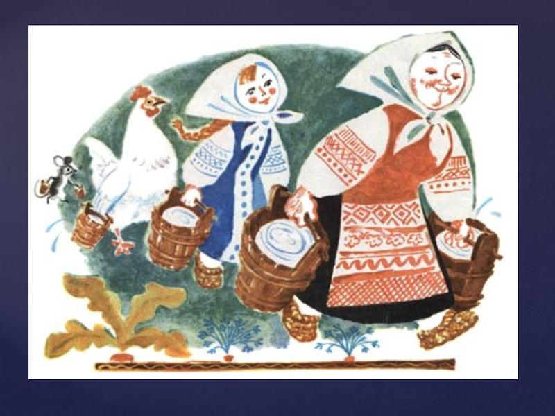Слайд 4Жили-были бабушка, внучка, курочка и мышка