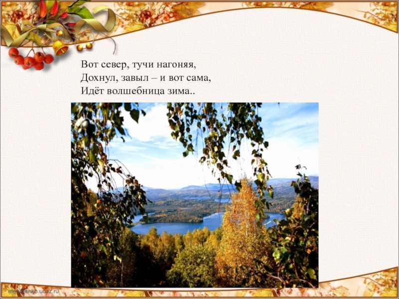 Слайд 6Вот север, тучи нагоняя, Дохнул, завыл – и вот сама, Идёт волшебница зима..