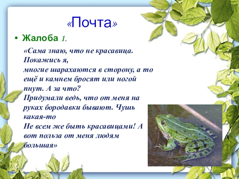 Не всем же быть красавицами! А вот польза от меня людям большая»