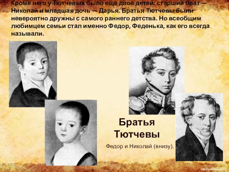 Как-то маленькие братья Николай и Фёдор попали на детский бал, проводимый в доме князей Трубецких. Там они увидели маленького кудрявого мальчика, который чем-то смешил всех окружавших его детей.