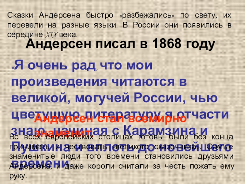 Андерсен стал всемирно знаменит.