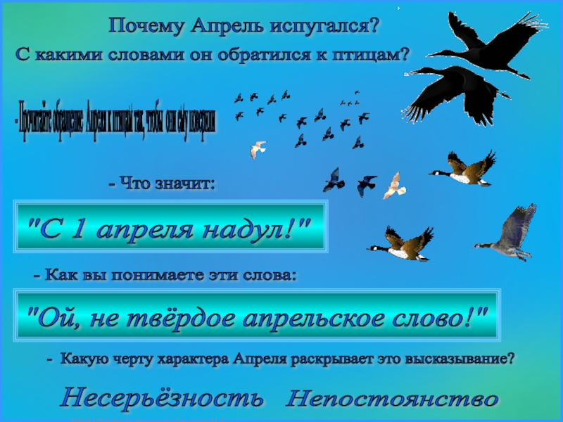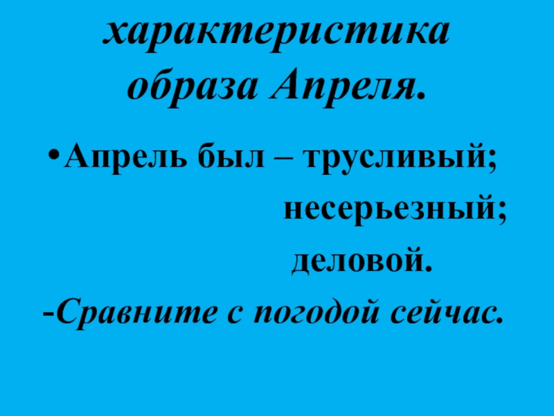 Месяц Апрель наделён человеческими качествами и умеет говорить и рассуждать