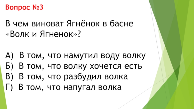 В чем виноват Ягнёнок в басне «Волк и Ягненок»?