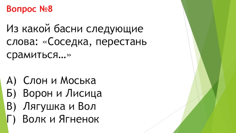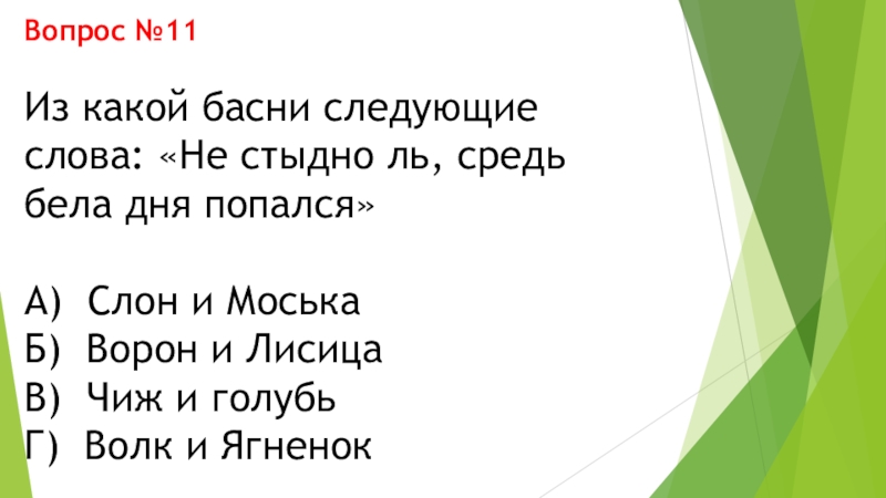 Из какой басни следующие слова: «Не стыдно ль, средь бела