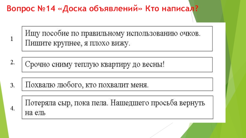 Слайд 25Вопрос №14 «Доска объявлений» Кто написал?