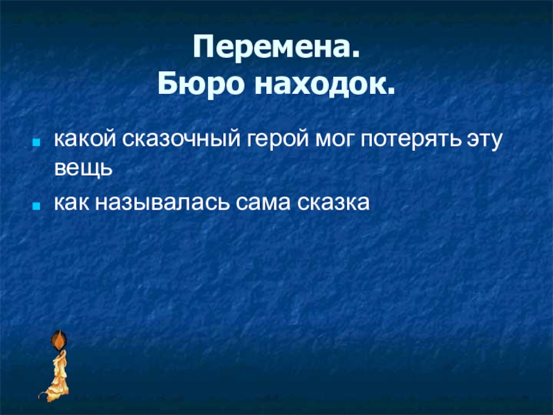 Перемена.  Бюро находок. какой сказочный герой мог потерять эту вещь как называлась сама сказка