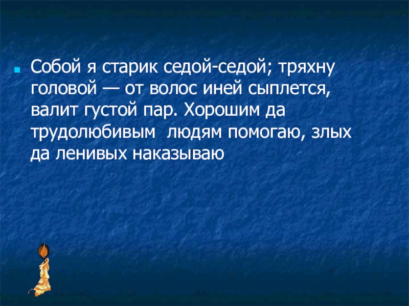Слайд 10Собой я старик седой-седой; тряхну головой — от волос иней сыплется,