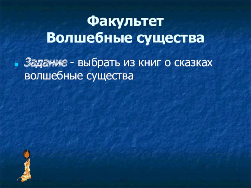 Факультет  Волшебные существа Задание - выбрать из книг о сказках волшебные существа