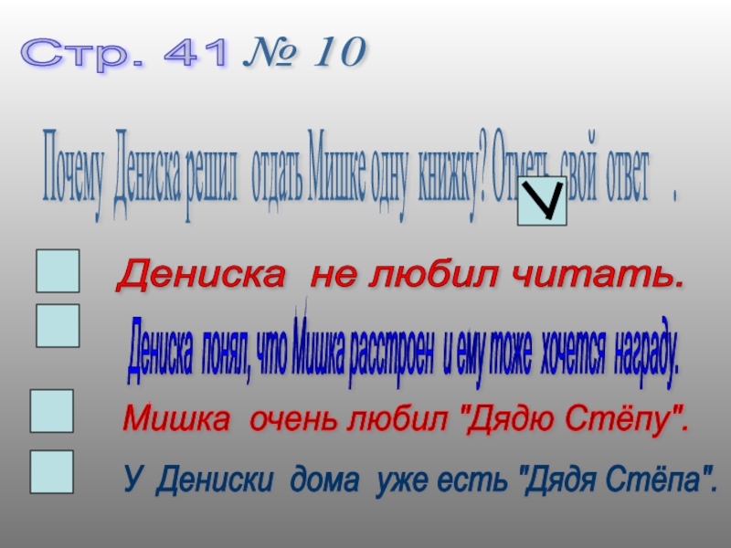 Дениска понял, что Мишка расстроен и ему тоже хочется награду.