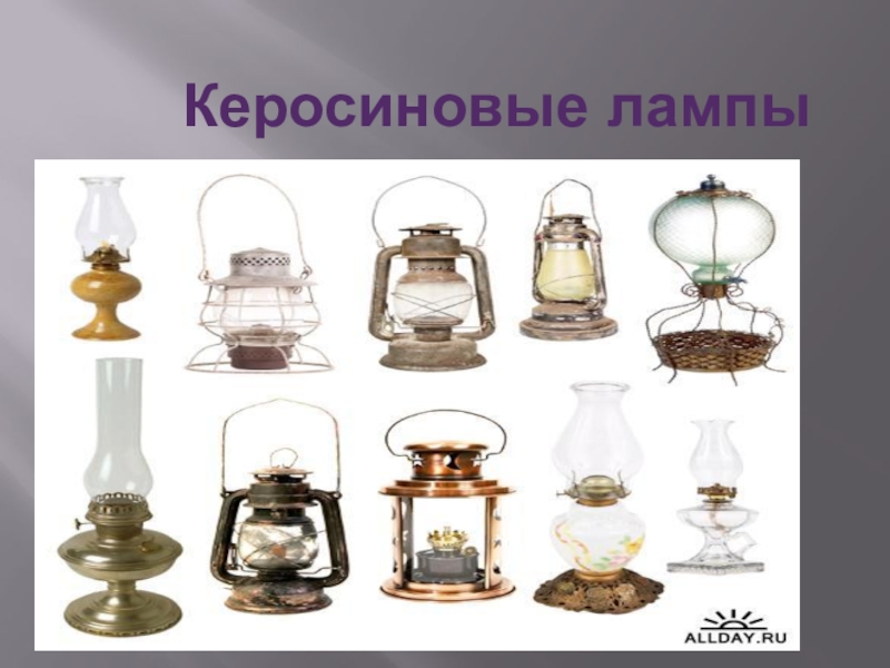 Слайд 11 Керосиновые лампы