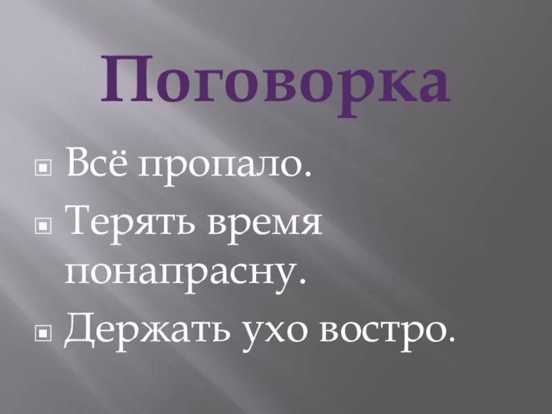 Всё пропало.Терять время понапрасну.Держать ухо востро.  Поговорка