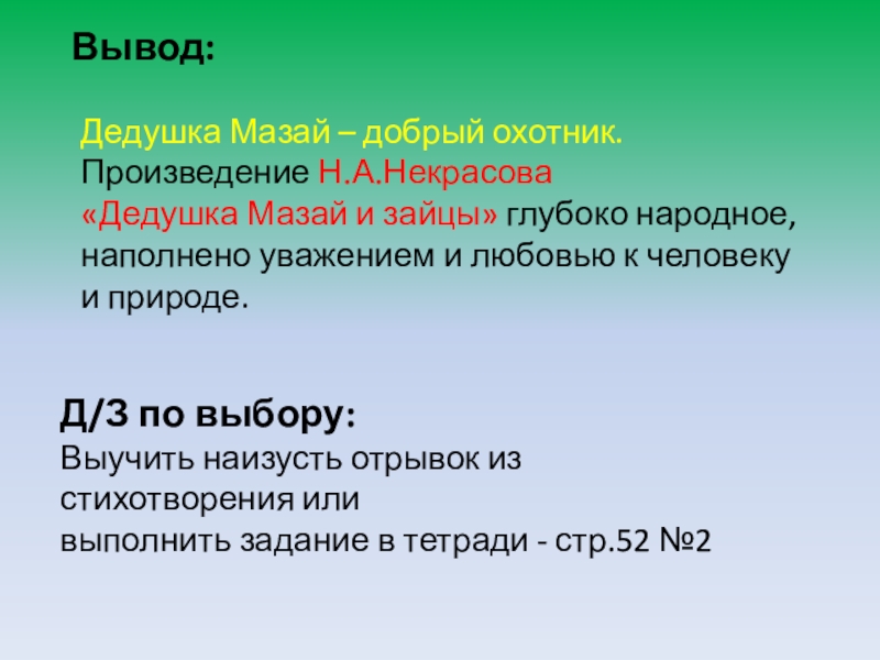 «Дедушка Мазай и зайцы» глубоко народное, наполнено уважением и любовью к человеку и природе.
