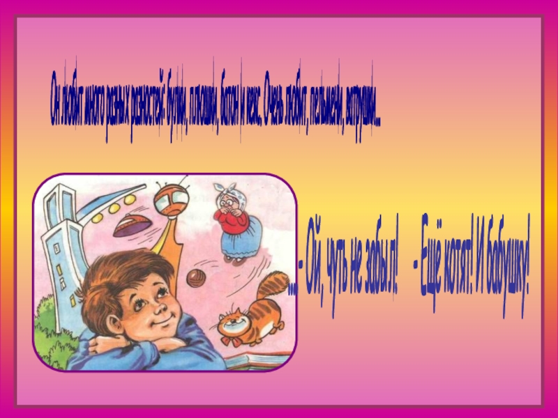 ....- Ой, чуть не забыл! - Ещё котят! И бабушку!
