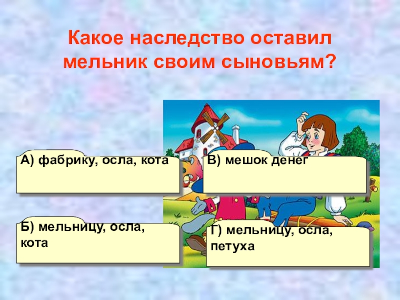 Какое наследство оставил мельник своим сыновьям?