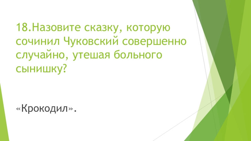 Слайд 1818.Назовите сказку, которую сочинил Чуковский совершенно случайно, утешая больного сынишку?
