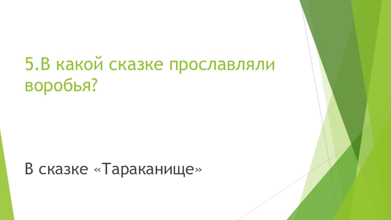 5.В какой сказке прославляли воробья?В сказке «Тараканище»