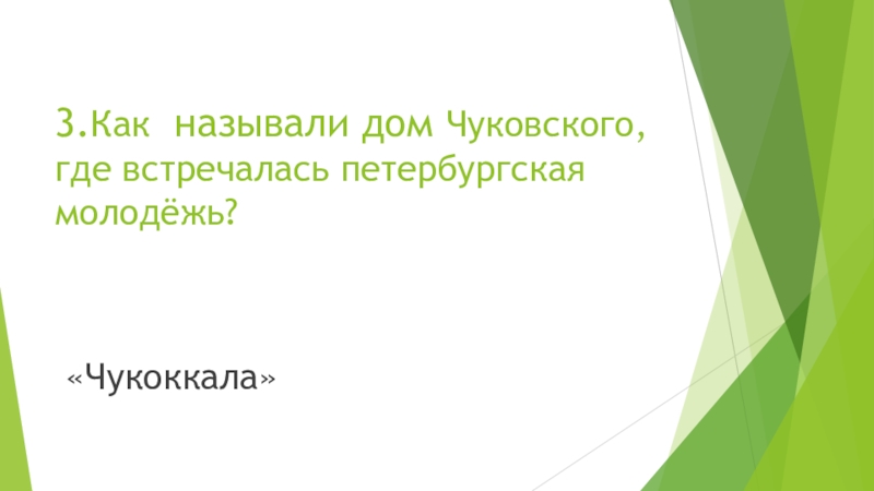 3.Как называли дом Чуковского, где встречалась петербургская молодёжь? «Чукоккала»