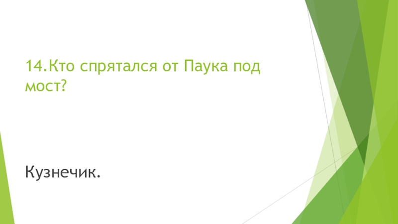 14.Кто спрятался от Паука под мост?Кузнечик.