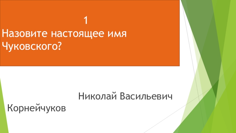 1 Назовите настоящее имя Чуковского? Николай Васильевич Корнейчуков